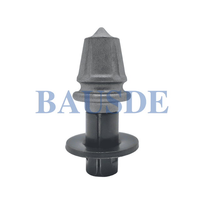 BAUSDE offers all kinds of round shank picks for medium-size and large-size road milling machines, for removing asphalt pavements. This tool is equipped with a cap-shaped tungsten carbide tip, alloy steel body, wear plates, clamping sleeve.